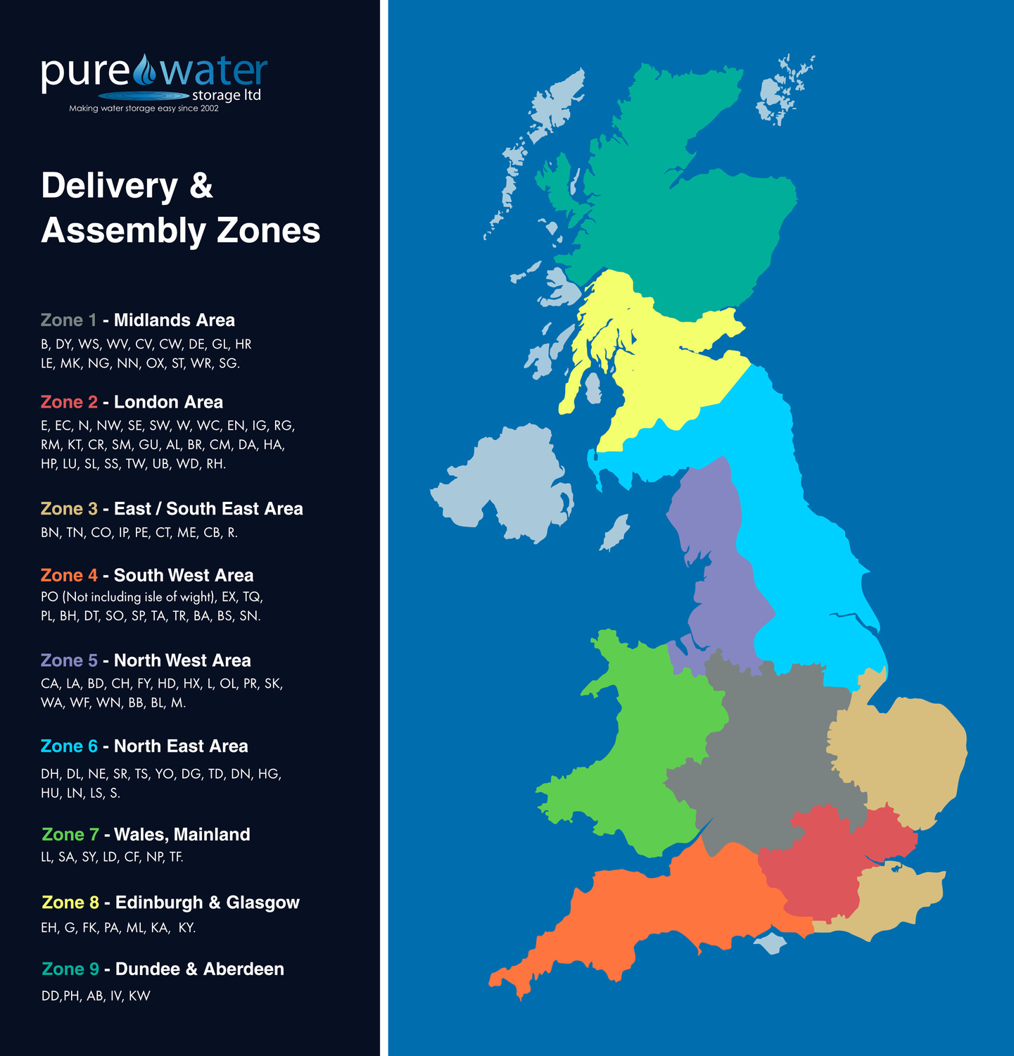AB, CA, CT, DD, DG, EH, FK, G, IV, IM, KA, KW, KY, LD, LL, ML, PA, PH, PO Isle of Wight, SA, SY, TD, TN, TR and Scottish Highlands.