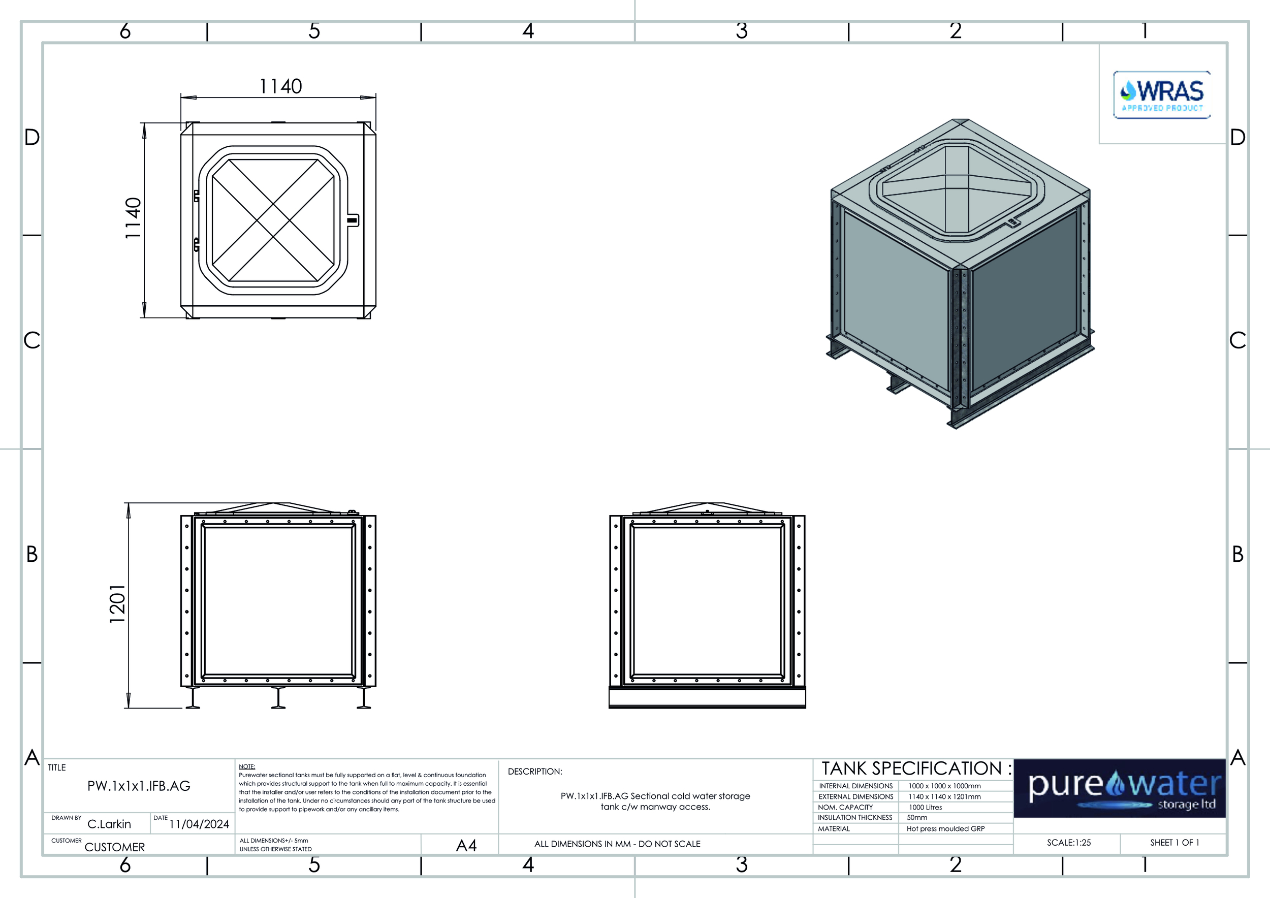 Insulated or None insulated available , Kiwa REG4 & WRAS approved for use with potable water. Suitable for a variety of applications including process cooling, rainwater harvesting and many other systems and processes where containment of water is necessary. All gaskets, seals and fixings for assembly are included. Available for self-assembly, or on site assembly is available by fully trained engineers for an additional cost.