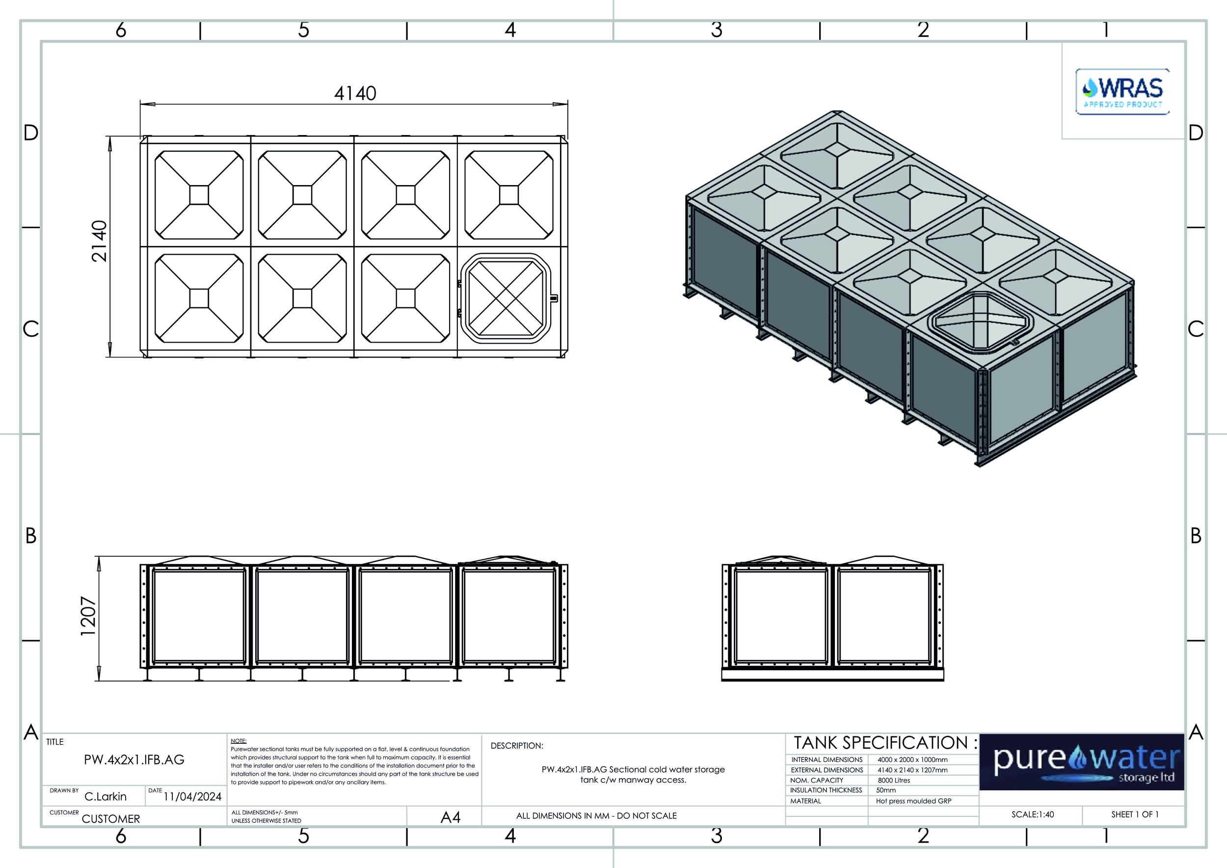 Insulated or None insulated available , Kiwa REG4 & WRAS approved for use with potable water. Suitable for a variety of applications including process cooling, rainwater harvesting and many other systems and processes where containment of water is necessary. All gaskets, seals and fixings for assembly are included. Available for self-assembly, or on site assembly is available by fully trained engineers for an additional cost.