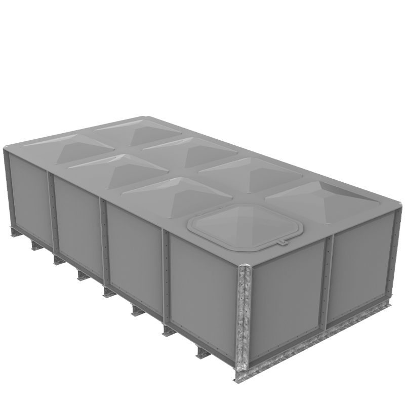 8000 Litre Nominal capacity GRP Sectional Water Tank, a sectional tank with an internally flanged base and externally flanged sides. Modular construction utilising bolt together panels suitable for on-site assembly.