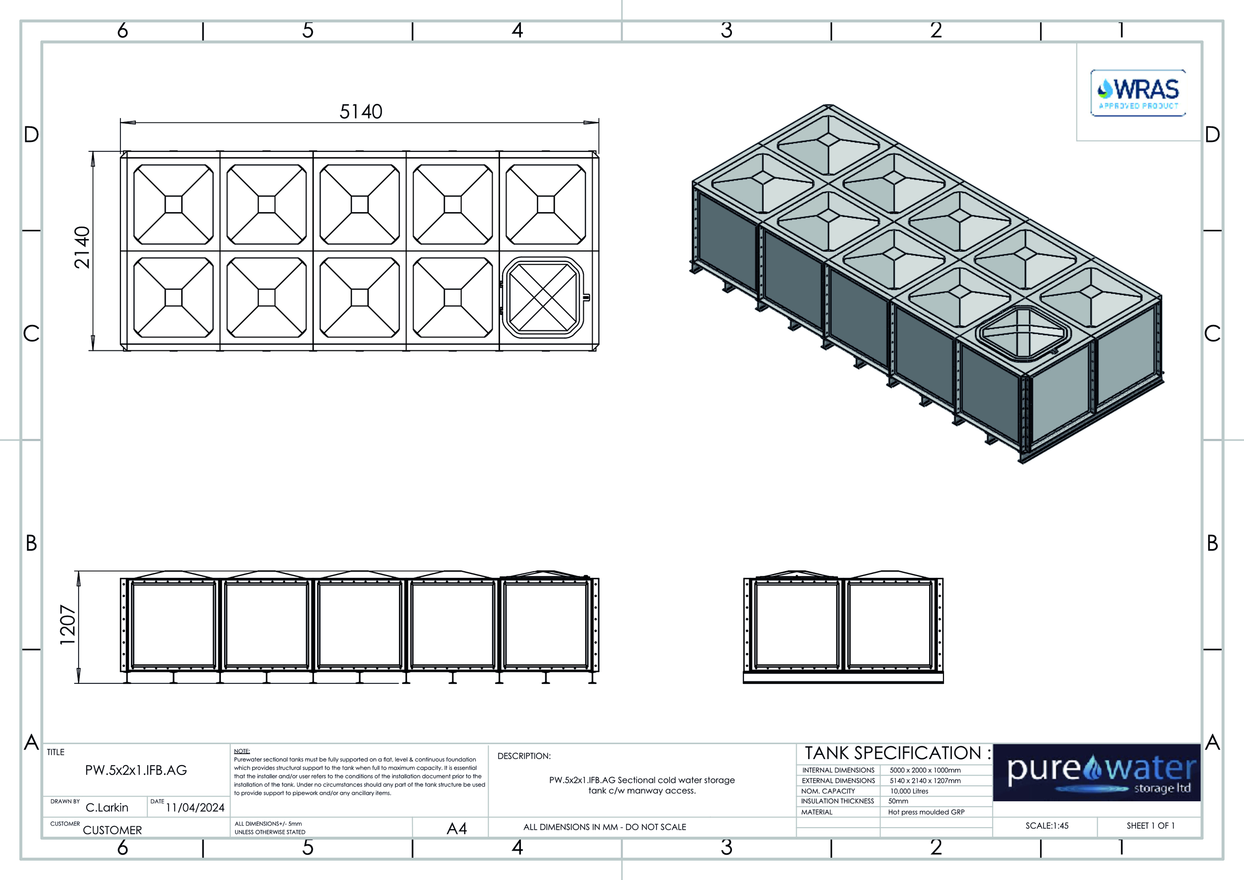 Insulated or None insulated available , Kiwa REG4 & WRAS approved for use with potable water. Suitable for a variety of applications including process cooling, rainwater harvesting and many other systems and processes where containment of water is necessary. All gaskets, seals and fixings for assembly are included. Available for self-assembly, or on site assembly is available by fully trained engineers for an additional cost.
