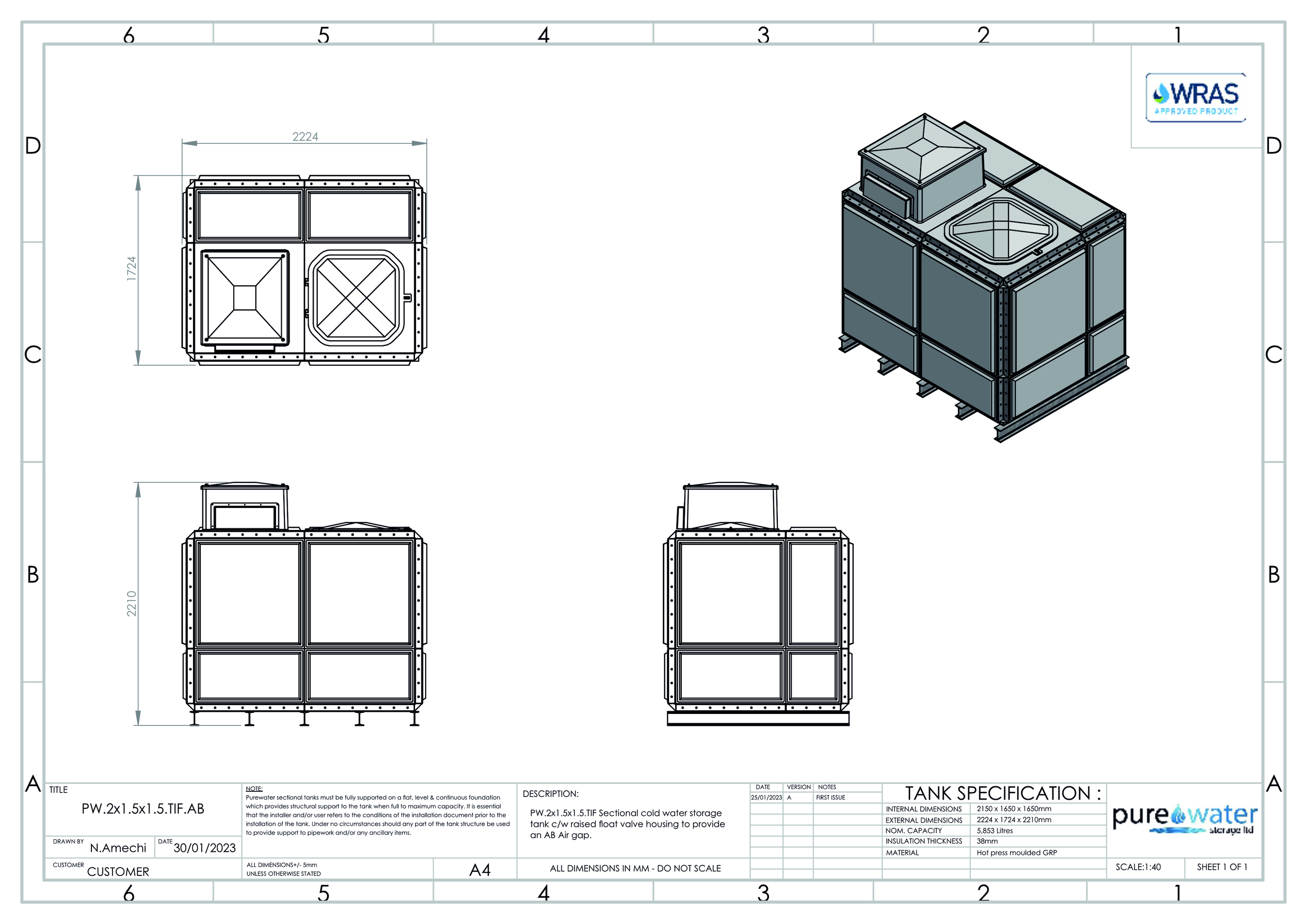 A Totally Internally Flanged Tank (TIF) is the ideal sectional format for plant rooms with minimal space, due to much smaller access requirements.