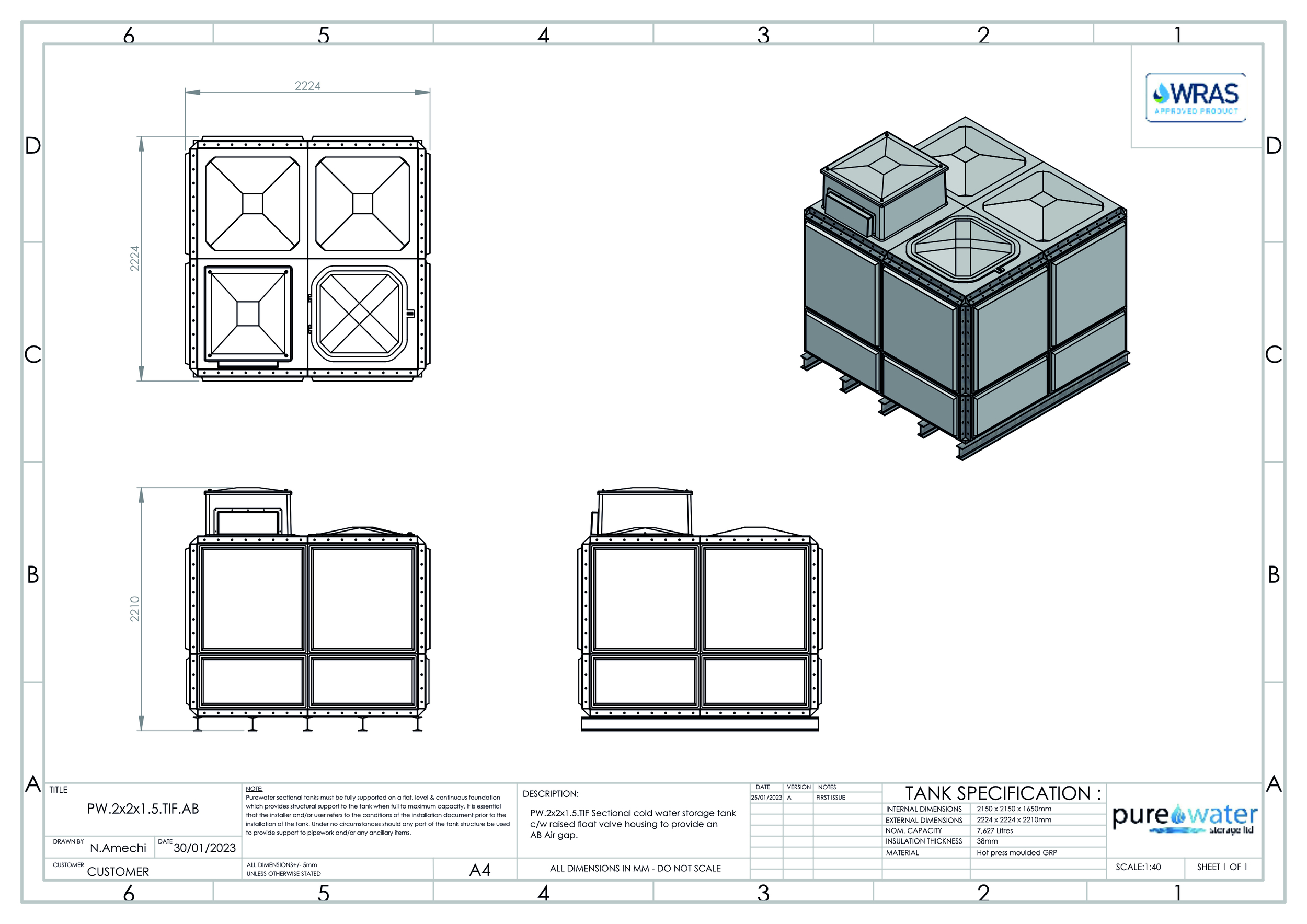 A Totally Internally Flanged Tank (TIF) is the ideal sectional format for plant rooms with minimal space, due to much smaller access requirements.