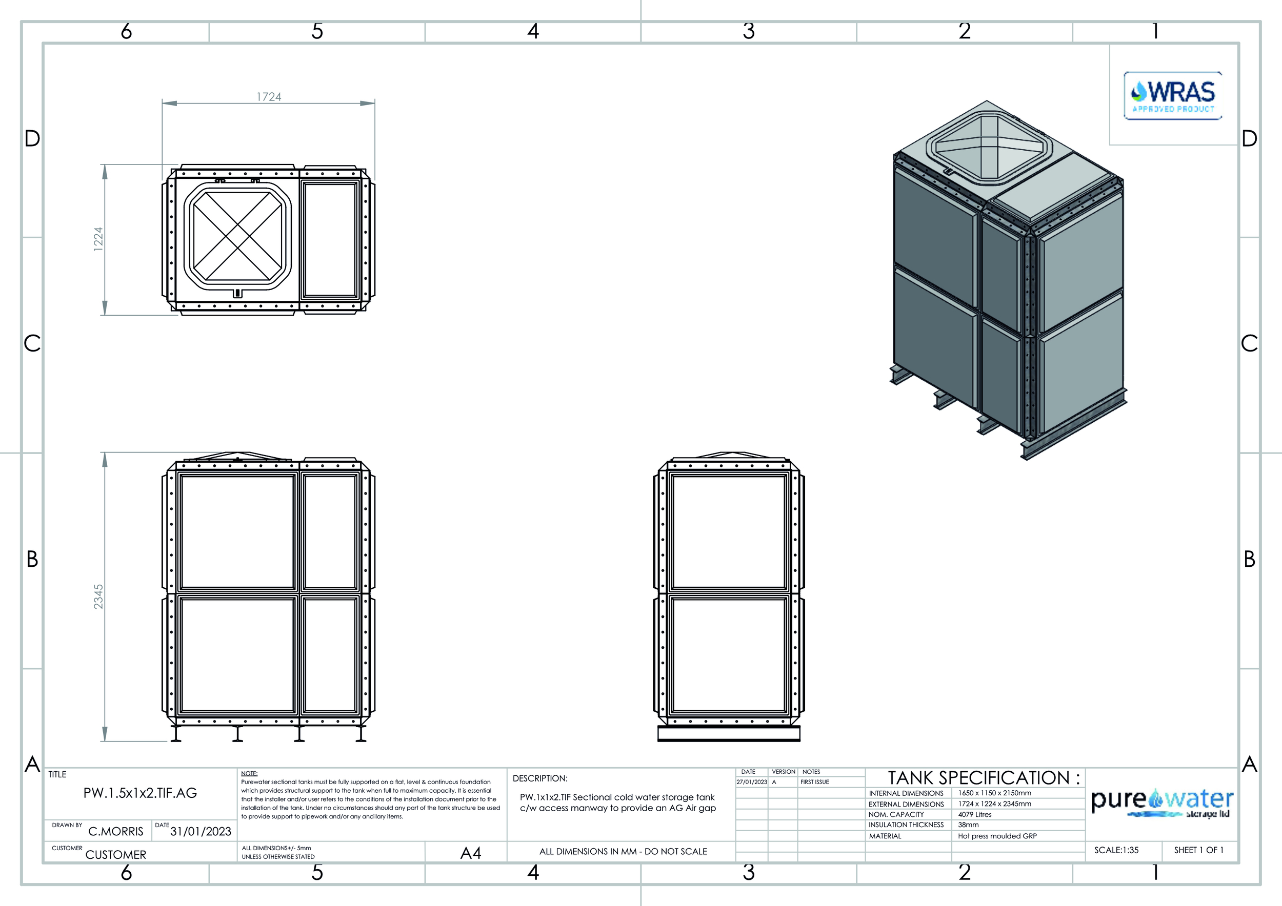 A Totally Internally Flanged Tank (TIF) is the ideal sectional format for plant rooms with minimal space, due to much smaller access requirements.
