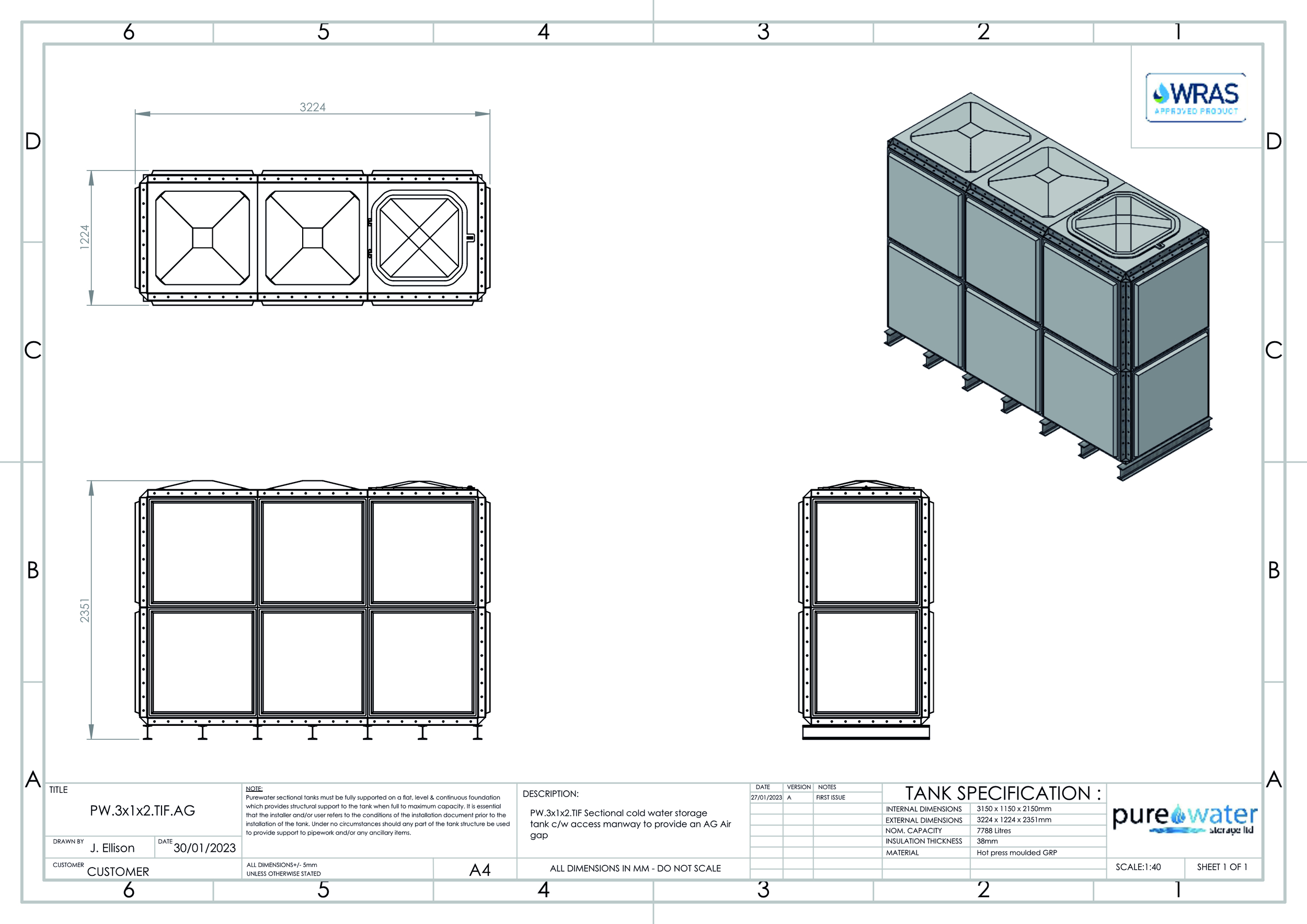 A Totally Internally Flanged Tank (TIF) is the ideal sectional format for plant rooms with minimal space, due to much smaller access requirements.