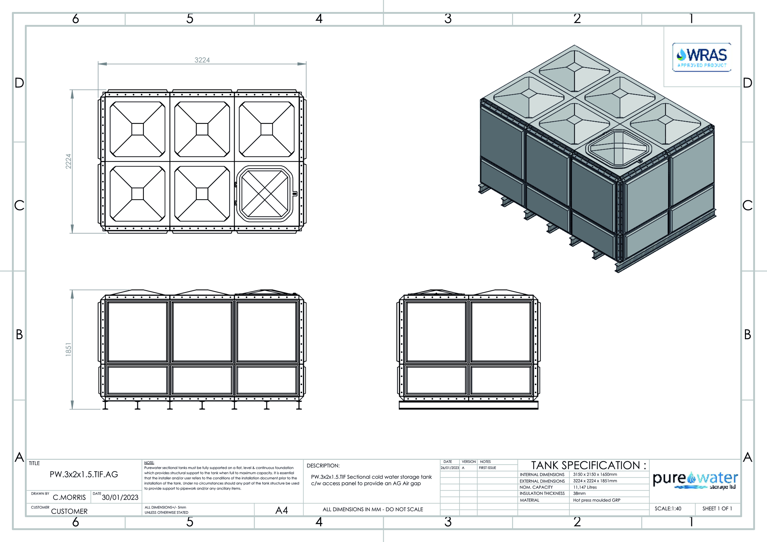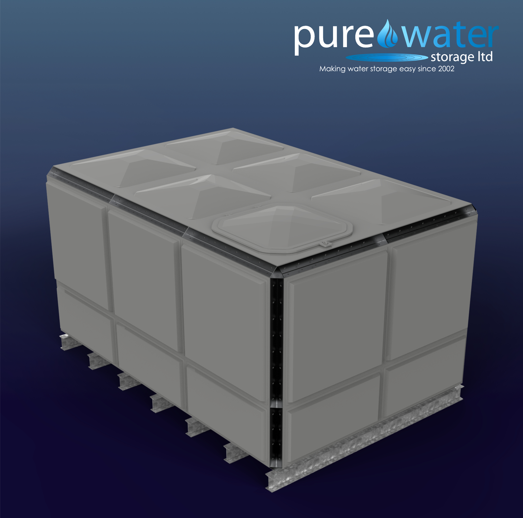 11,174 Litre Nominal capacity GRP Sectional Water Tank, a sectional tank with an internally flanged base and internally flanged sides.