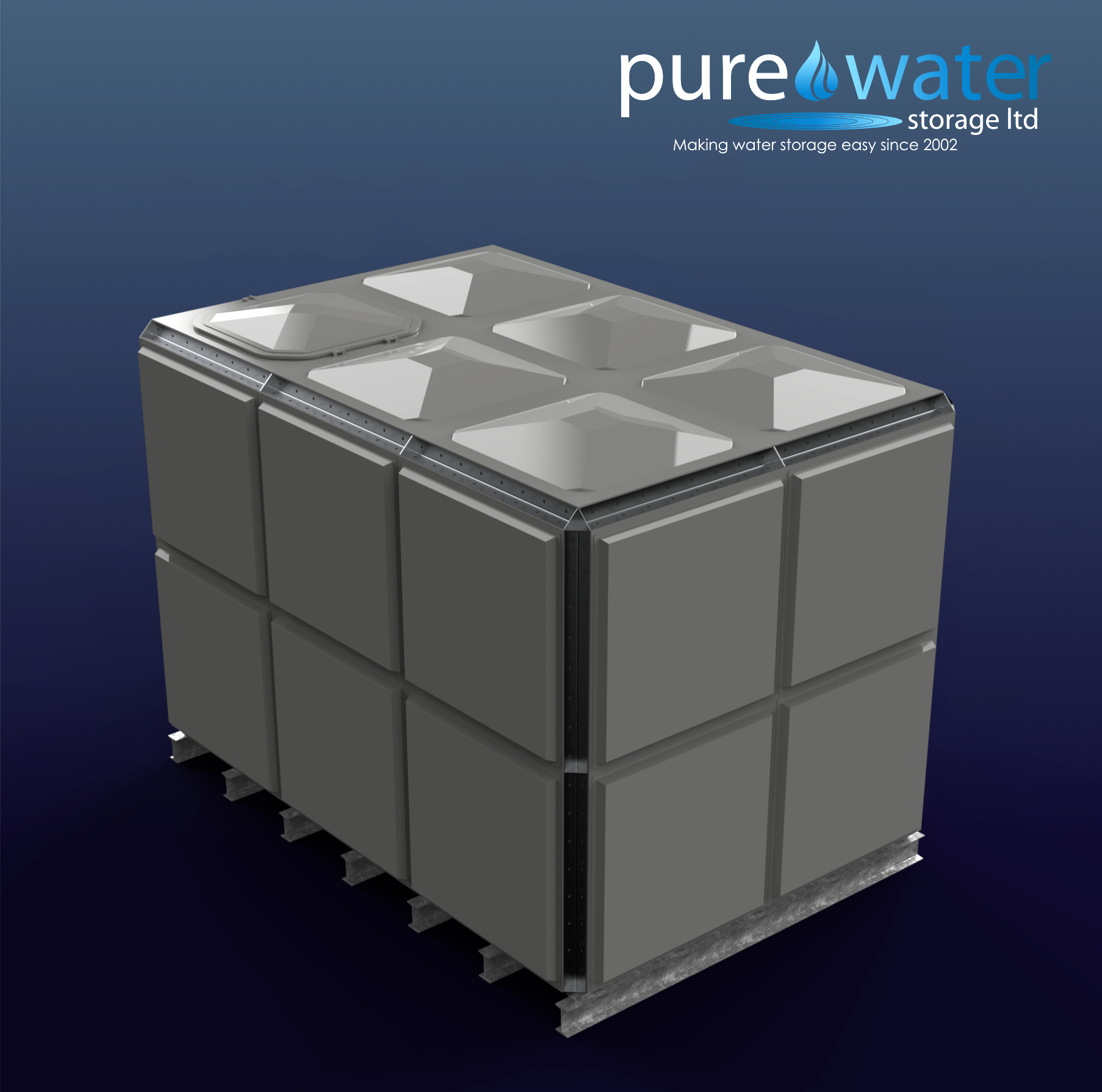 14,560 Litre Nominal capacity GRP Sectional Water Tank, a sectional tank with an internally flanged base and internally flanged sides.