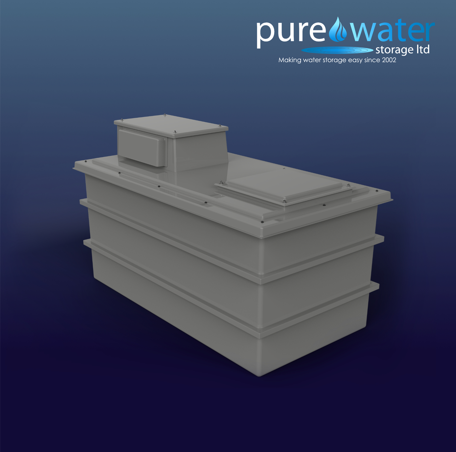 WRAS approved Grp one piece 25mm insulated cold water storage tank with a capacity of 2000 litres to suit potable water.